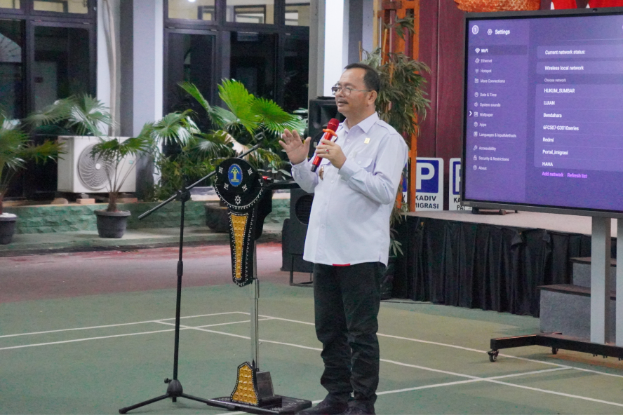 Setelah Apel bersama pegawai, Kepala Kantor Wilayah Kementerian Hukum Sumatera Barat, Alpius Sarumaha memberikan arahan kepada seluruh jajaran Kanwil Kemenkum Sumbar pada Senin (14/07).